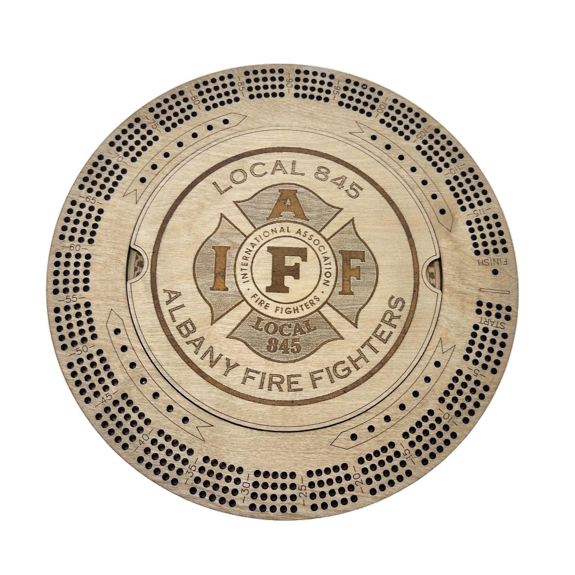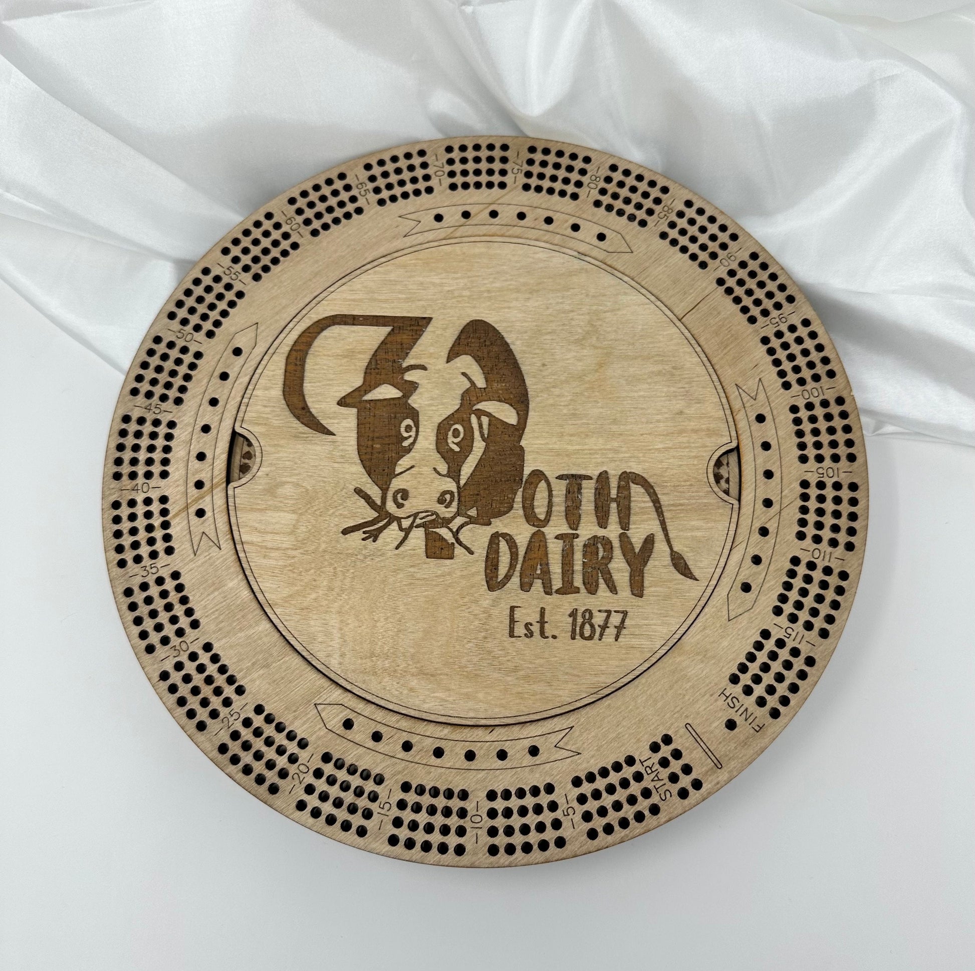 Company Logo Cribbage Board, Corporate Gift, Employee Gift Round Cribbage Board with Name, Logo, pegs, 4 Track Cribbage Board Family game